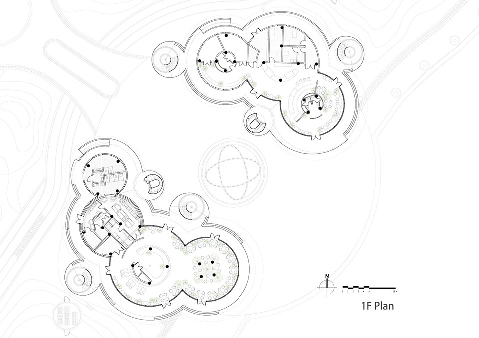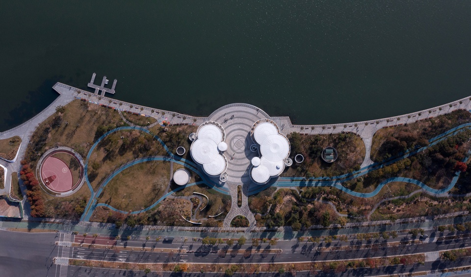 ▼云朵建筑鸟瞰,aerial view of the Cloud Pavilion (Building A)