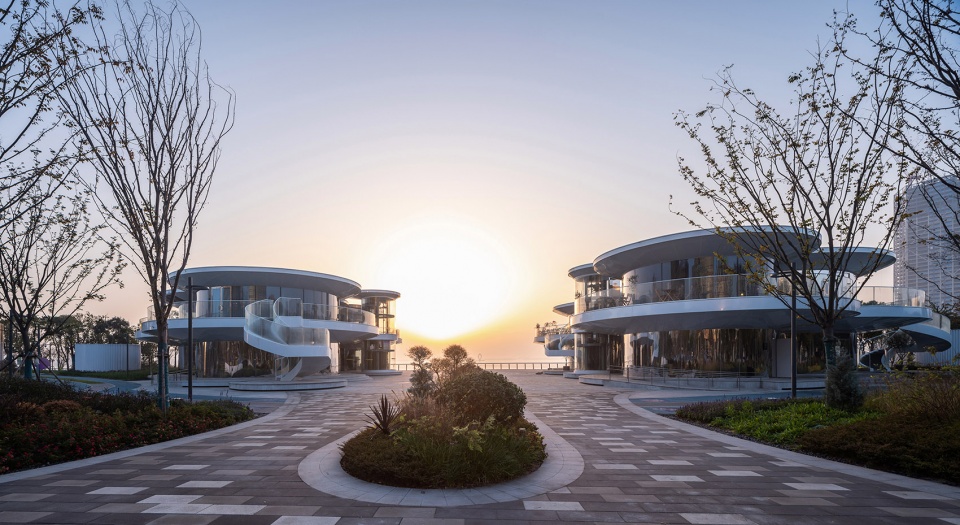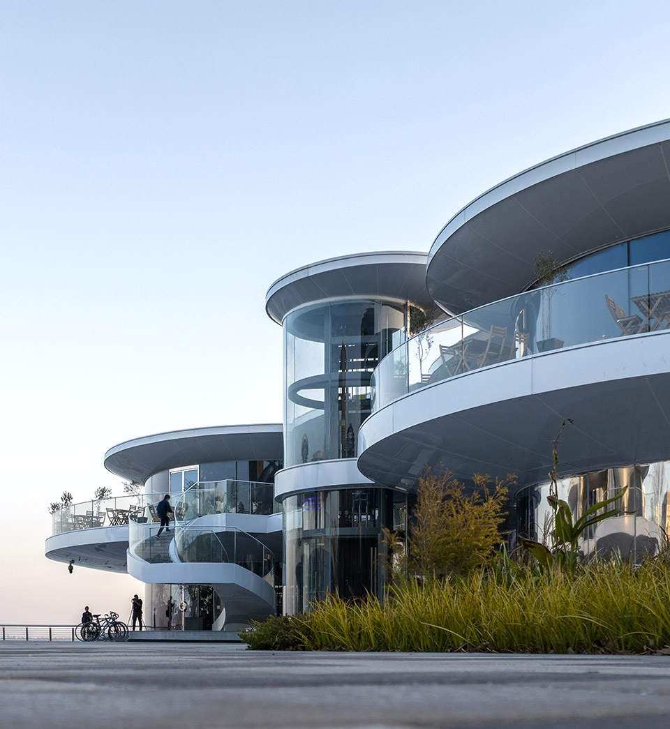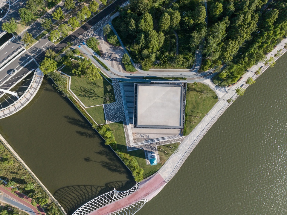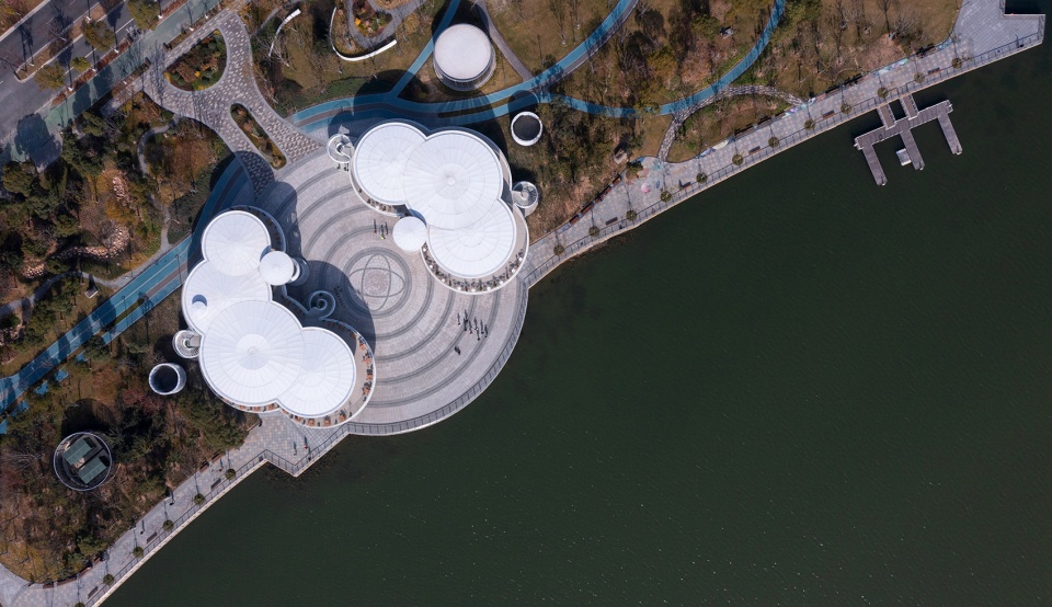 The Cloud Pavilion (Building A) is situated on the site of a former small pier. As part of the overall planning for Dishui Lake, this area will no longer function as a ferry terminal but has been fully opened for public use.Located in the center of the site, facing the heart of Dishui Lake, the old pier’s embankment protrudes beyond the lake’s shoreline, offering a very expansive lakeside view.