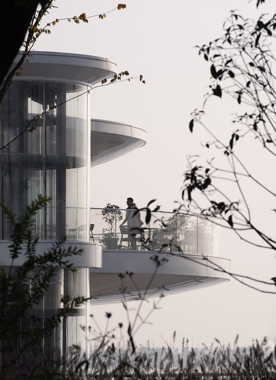 ▼圆弧形的全玻璃幕墙,a curved, fully glazed façade