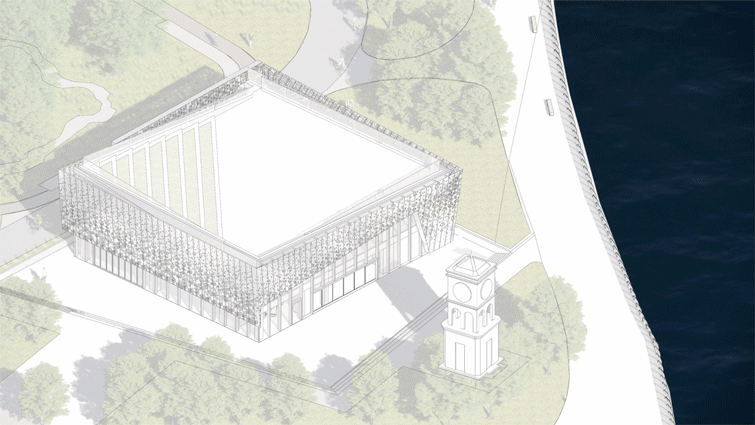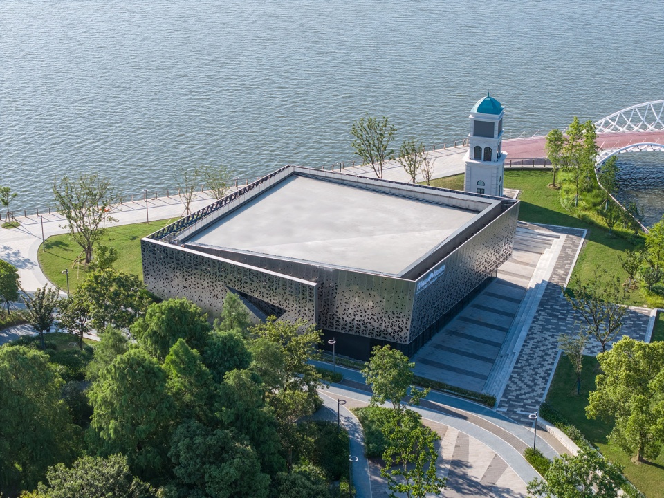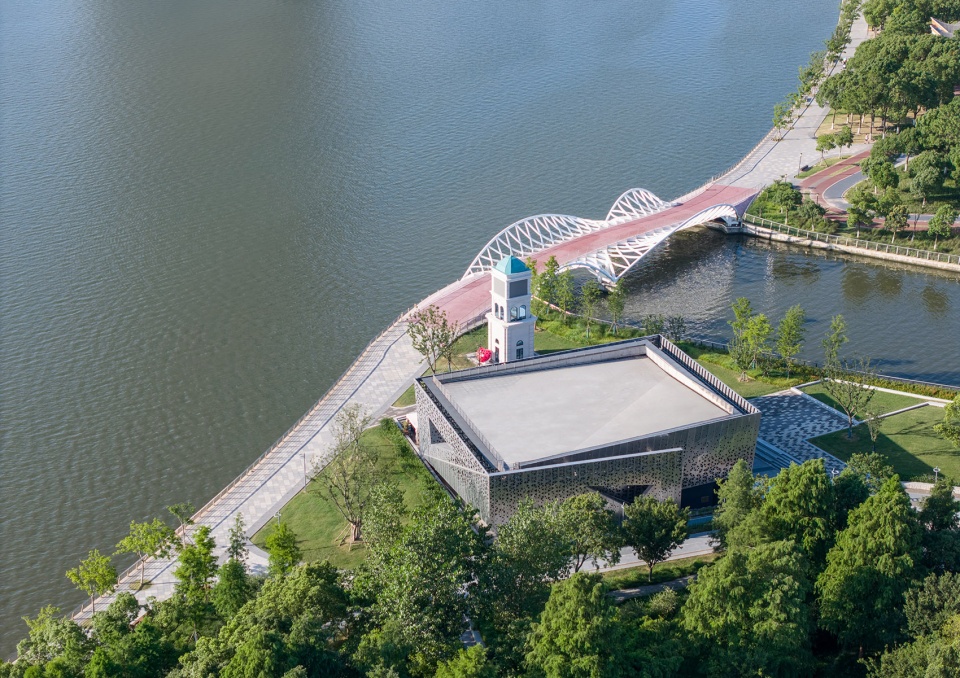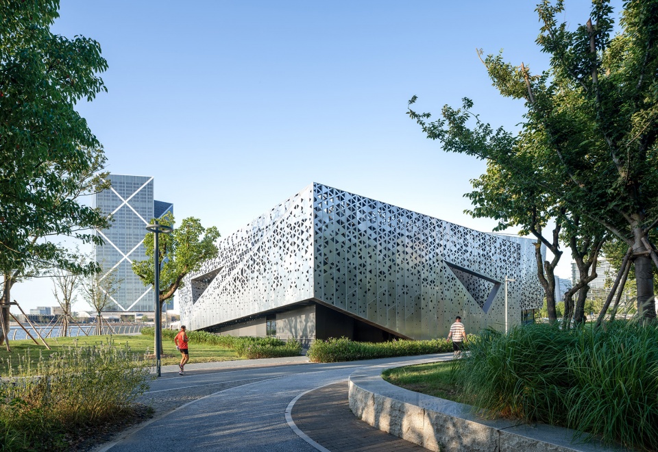 In contemporary practice, urban parks have evolved beyond mere botanical gardens or recreational spaces into public vessels for diverse civic activities. As such, new architecture must not only accommodate varied uses but also respond sensitively to the site’s environment and historical layers, crafting narrative-rich spatial experiences. This project rises to that challenge through a humble yet contemporary design strategy that establishes a dialogue between old and new. Taking the existing clock tower as an anchor, the main façade orients toward this historic marker. Brushed stainless steel is used as a reflective surface, softly mirroring the tower’s image—allowing the new structure to blend into the surroundings while subtly acknowledging the passage of time. To further strengthen this connection, a sunken plaza is inserted between the new building and the clock tower, creating a focused gathering space within the broad riverside greenbelt that draws people in and enhances spatial vitality.
