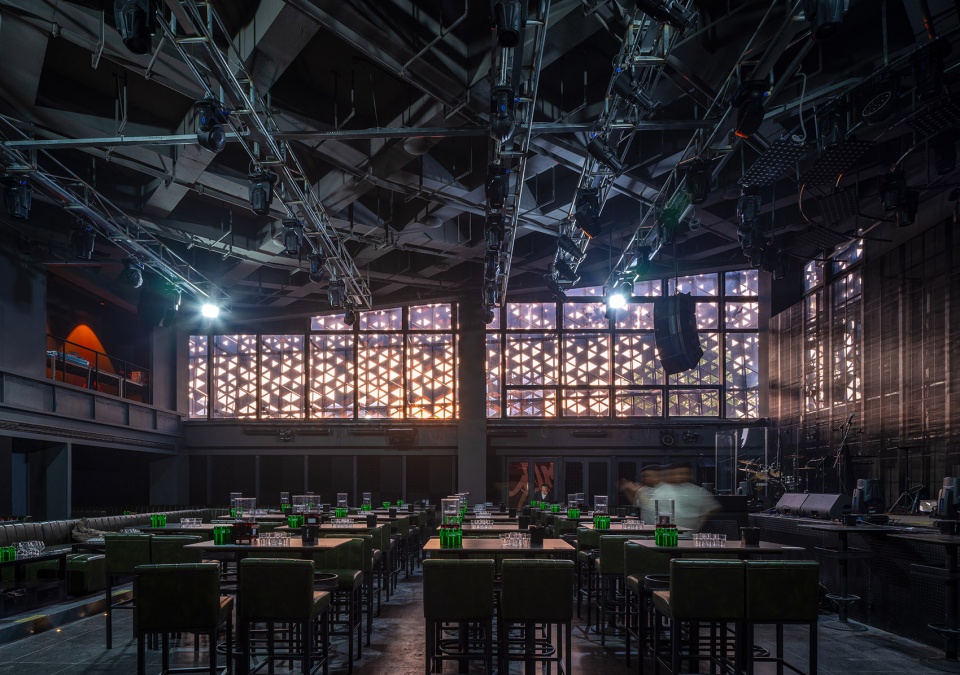 建筑空间的设计充分均衡室内功能与室外观景。远离湖边的区域设置为通高的音乐表演区,靠近湖边及广场的区域则是两层的观景休闲区。表演大厅中,结构采用均匀布置的格子梁系统,呈现清晰的逻辑感。机电管线主管道均被合理布置在大厅外围的房间走道中,确保了大厅内的使用高度和结构简洁。