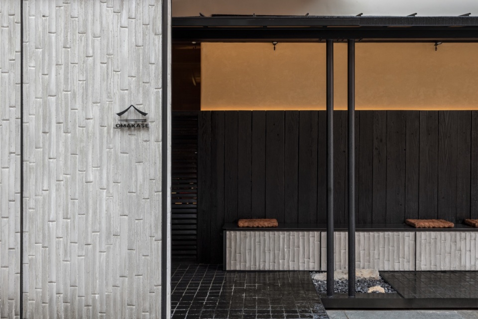 该项目为位于上海的日式餐厅金 Omakase 的扩建,由 TUO 建筑设计事务所设计。扩建需在短时间内完成,既为商业街道提供可停留的公共空间,又为餐厅增设入口与包间。