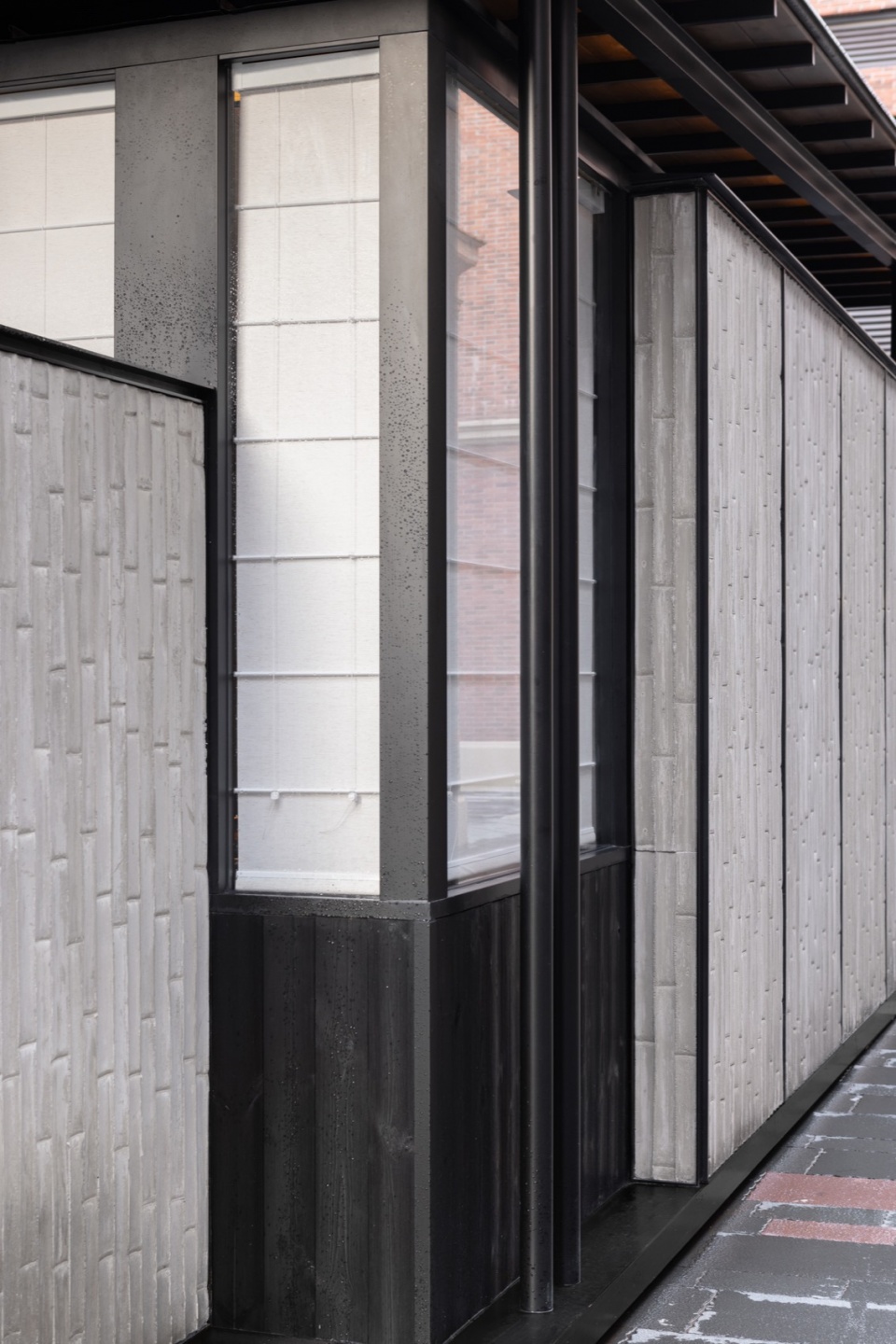 The design responds to two simultaneous needs: to create a public space that remains accessible during non-dining hours, and to provide a new threshold and private room for the restaurant. A new facade mediates between the intimacy of the restaurant and the openness of the street.