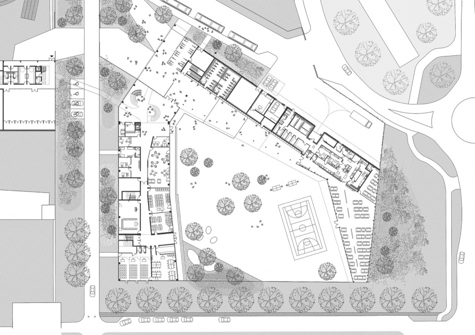 新学院的体育设施与市政府共享,从而增进了这一空间的互动与多样使用。这条公共街道是该项目与Champier村智慧融合的核心原则之一。