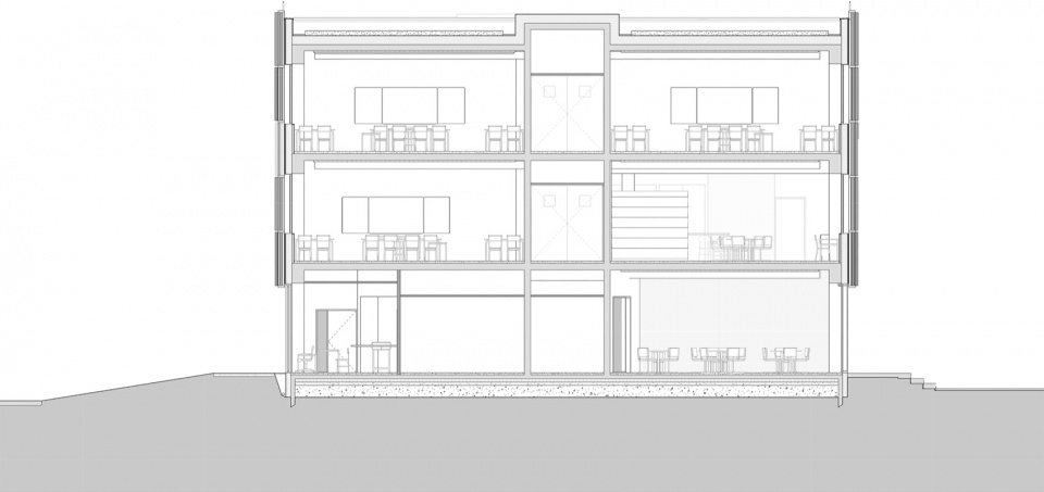 ▼学院和食堂剖面,Section of college and cantine