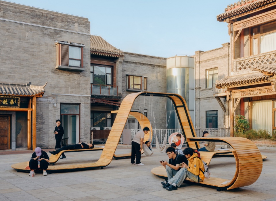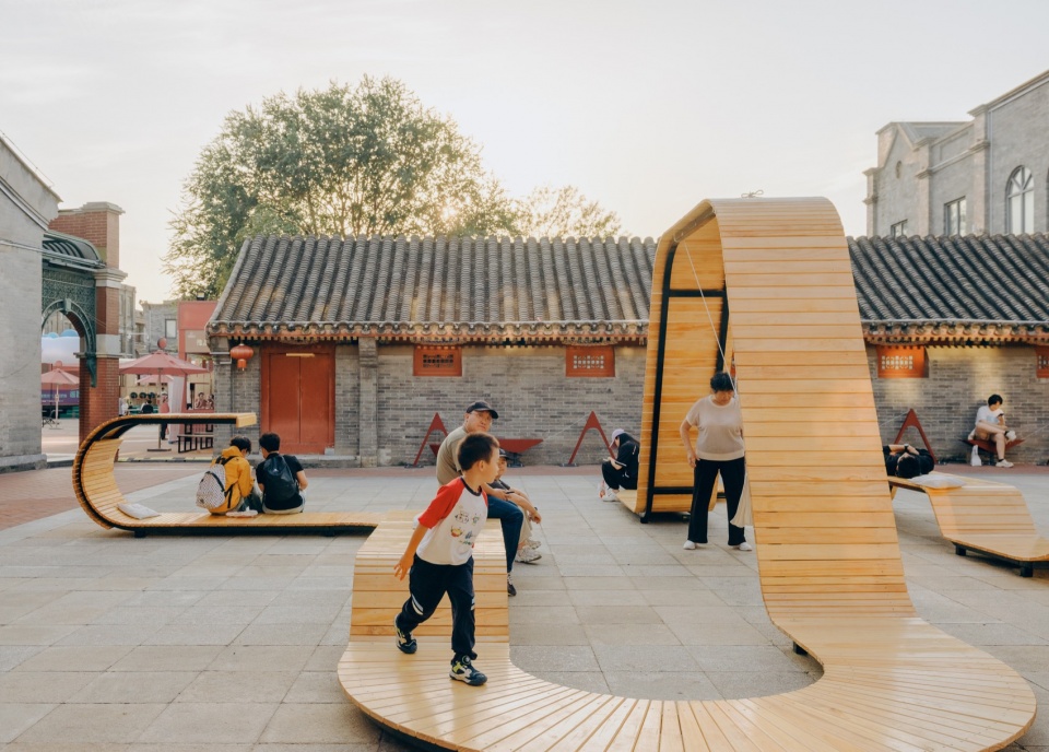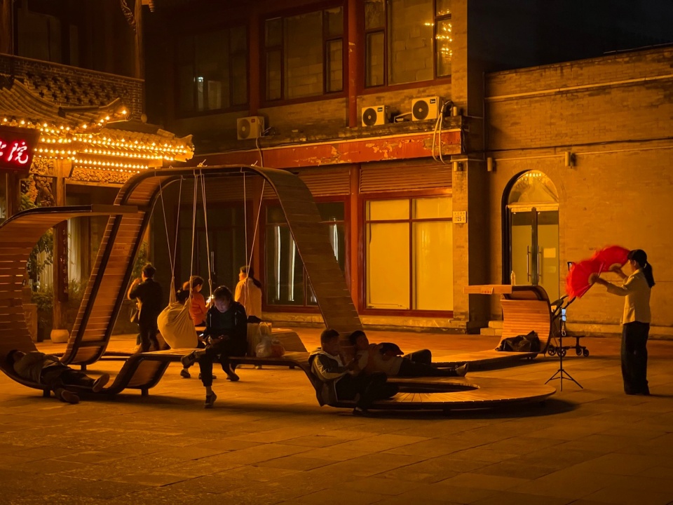 夜幕降临时,木制表面映射出四周亮起的灯光,犹如千家万户的炊火,回应着前门历史上商贾云集、酒榭歌楼的繁华意象。这根“面条儿”不仅将生活与艺术相连,更通过“身体参与”的方式,重新激活了这片街区作为饮食文化载体的场所精神。