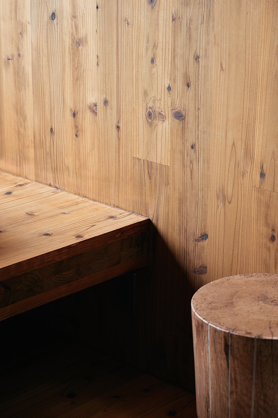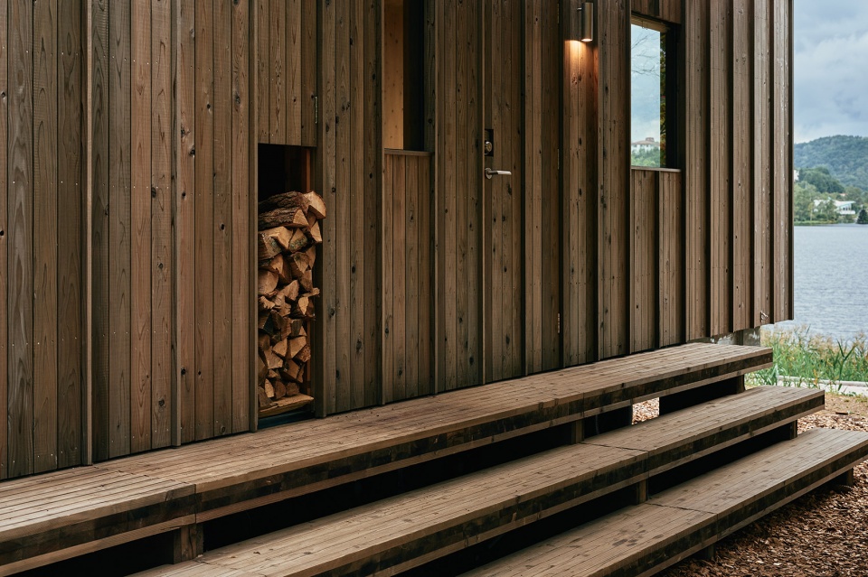 设计以“户外生活”为核心。与其鼓励人们停留在封闭的庇护之中,小屋更支持一种向外延展的生活方式。一个可从户外直接进入的小型桑拿房在山间寒意中提供温暖,而周围的台阶、壁炉则构成聚会与休憩的户外场所。建筑在此作为一处安静的锚点,提供足够的舒适与安全感,使人们愿意在自然中久留。
