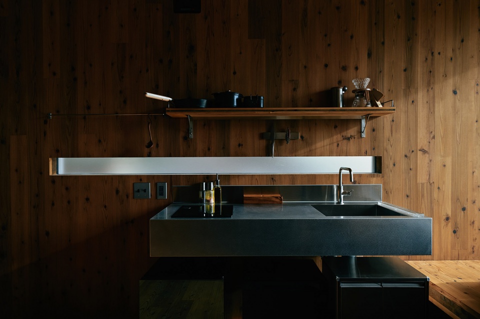 Constructed entirely from Japanese cedar cross-laminated timber (CLT), the structure expresses warmth and solidity through the material. The interior surfaces are left exposed, allowing the cedar to age naturally and register the passing of time. Installed without foundations, the cabin touches the ground lightly, preserving the landscape beneath it and allowing easy relocation if needed.