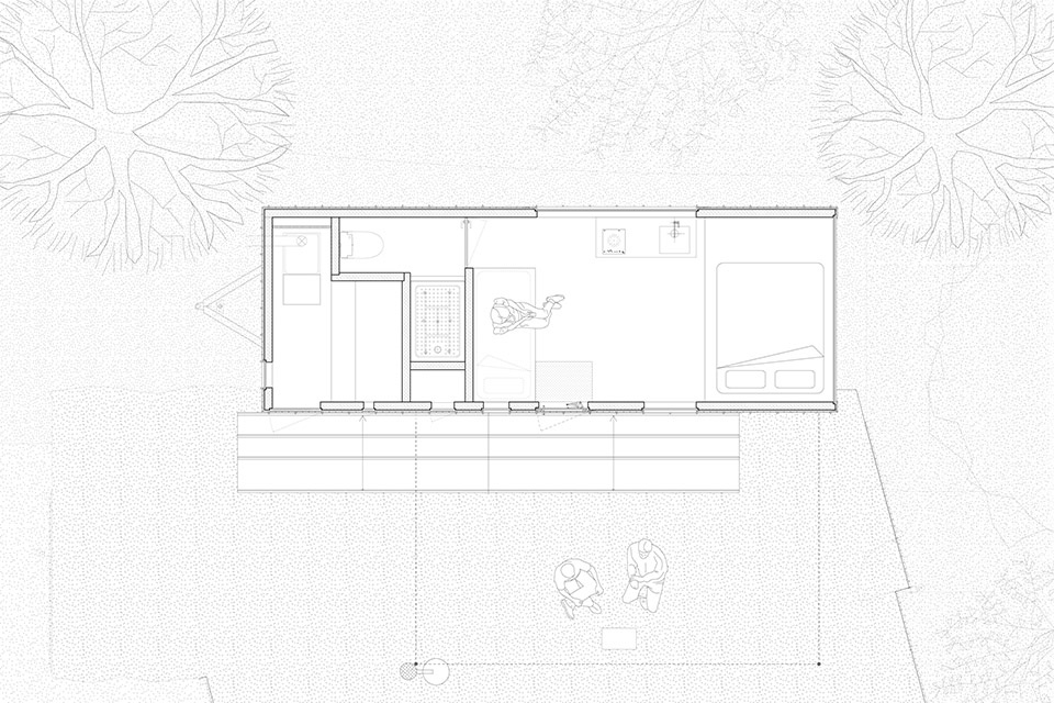 ▼森林中的小型木结构住宿单元,a small timber accommodation quietly embedded in the lakeside forest