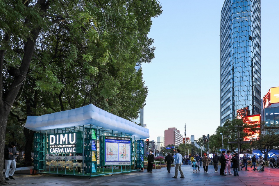 Created by DIMU Design (CAFA·A Urban Art Innovation Center) for the 4th Beijing Urban Regeneration Best Practices Award Ceremony (2025) at ART PARK, Zhongguancun, the DIMU Pavilion is a lightweight, sustainable, and mobile micro-exhibition hall. This temporary structure serves both as a showcase for the award-winning studio and as an integrated urban art installation featuring curation, a cultural market, and public engagement.