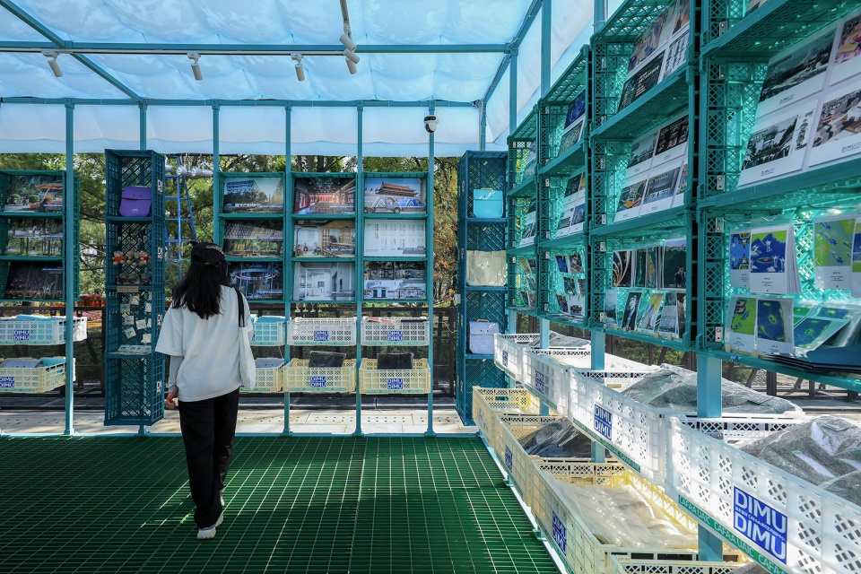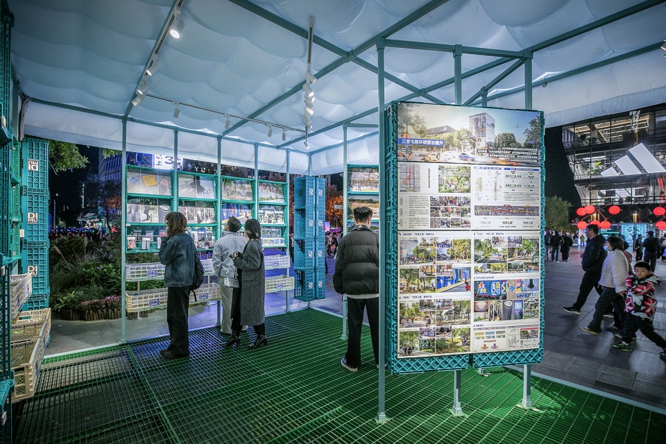 The pavilion not only showcases DIMU Design’s urban impact but, through its mobile reuse, embodies sustainable action. It stands as a vivid example of value co-creation between the designer, government, and public. Using common materials—square steel tubing, plastic crates, and pneumatic cubes—under tight constraints, the design is a practice engaging with materiality, contemporary ideas, and spirit.
