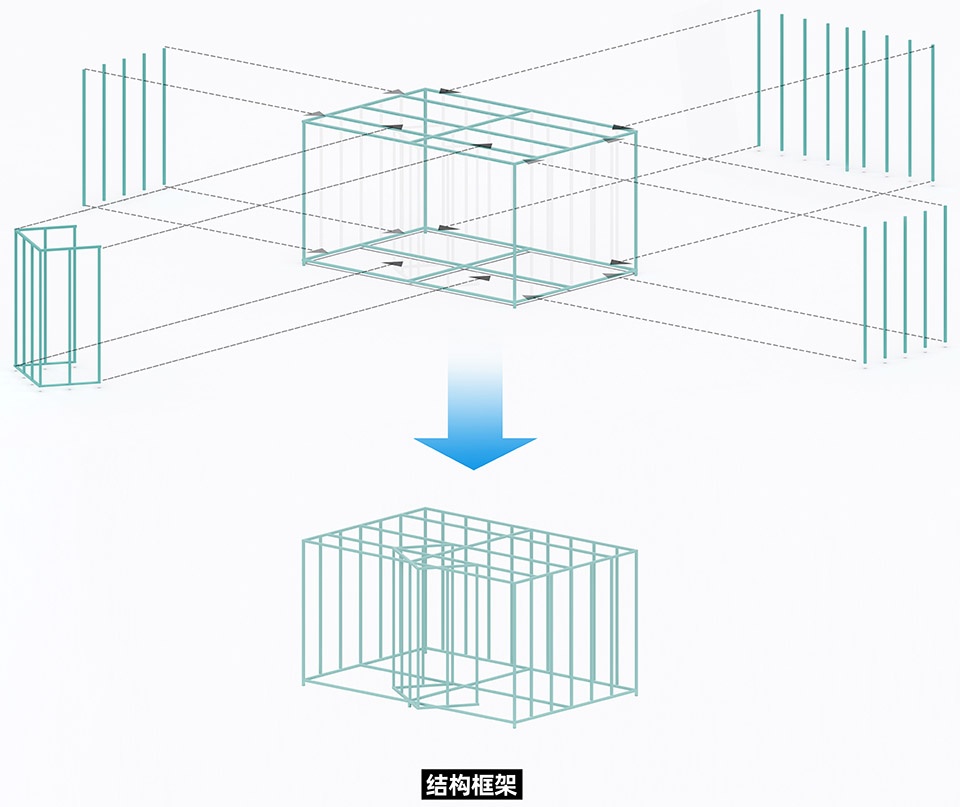 ▼展厅结构框架,structural logic diagram