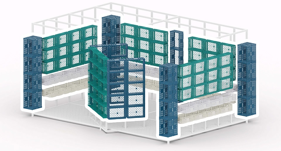 ▼作为基本建构单元的篮筐,plastic crates as modular units