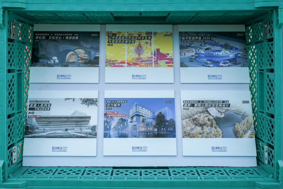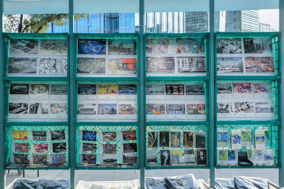 The design brings the CAFA’s teaching work into the exhibition, creating a dedicated wall for graduation projects. Through plastic crates displays and matching postcards, it shows the studio’s ongoing role in architectural education and links it with professional practice, presenting a clear picture of the “practice–teaching–research” system.