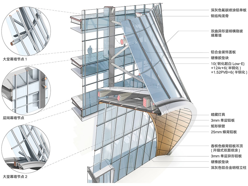 ▼运动员酒店大堂幕墙节点,Curtain Wall Section Details of the Hotel
