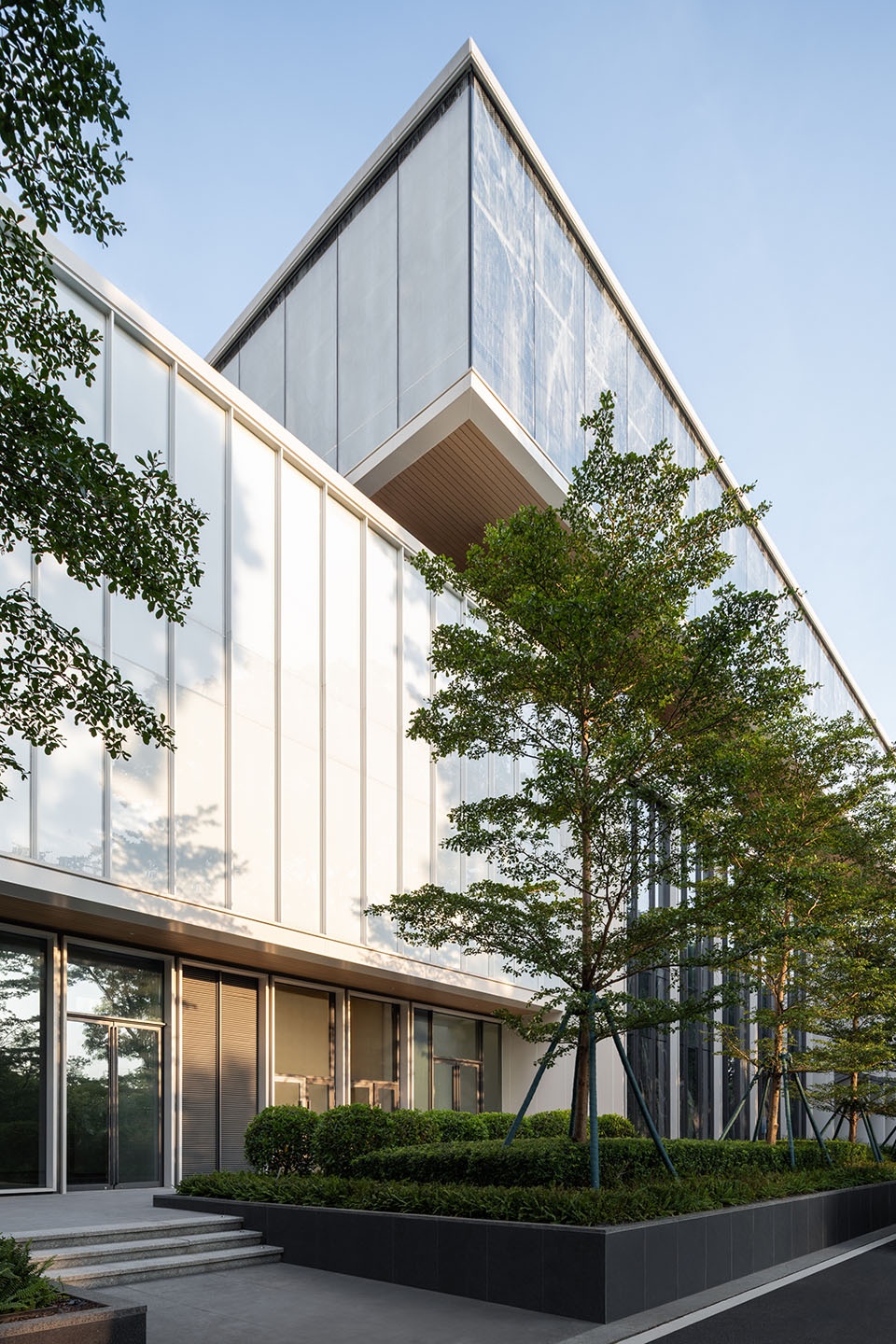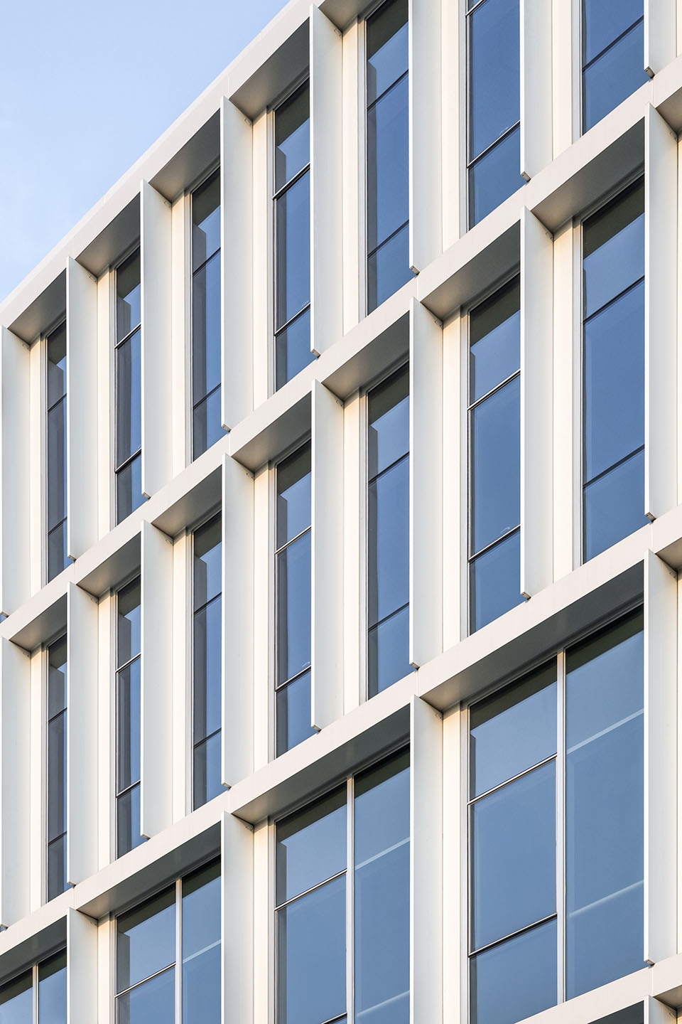 Abundant natural light enters deep into the interior through vertical voids and transparent circulation zones, creating bright, healthy, and welcoming environments. The white aluminum façades with slender vertical fins filter sunlight and ensure thermal comfort in the subtropical climate. Together, these buildings show how thoughtful architectural design can respond to client ambitions while creating adaptable, efficient, and people-centered workplaces for a new generation of professionals.