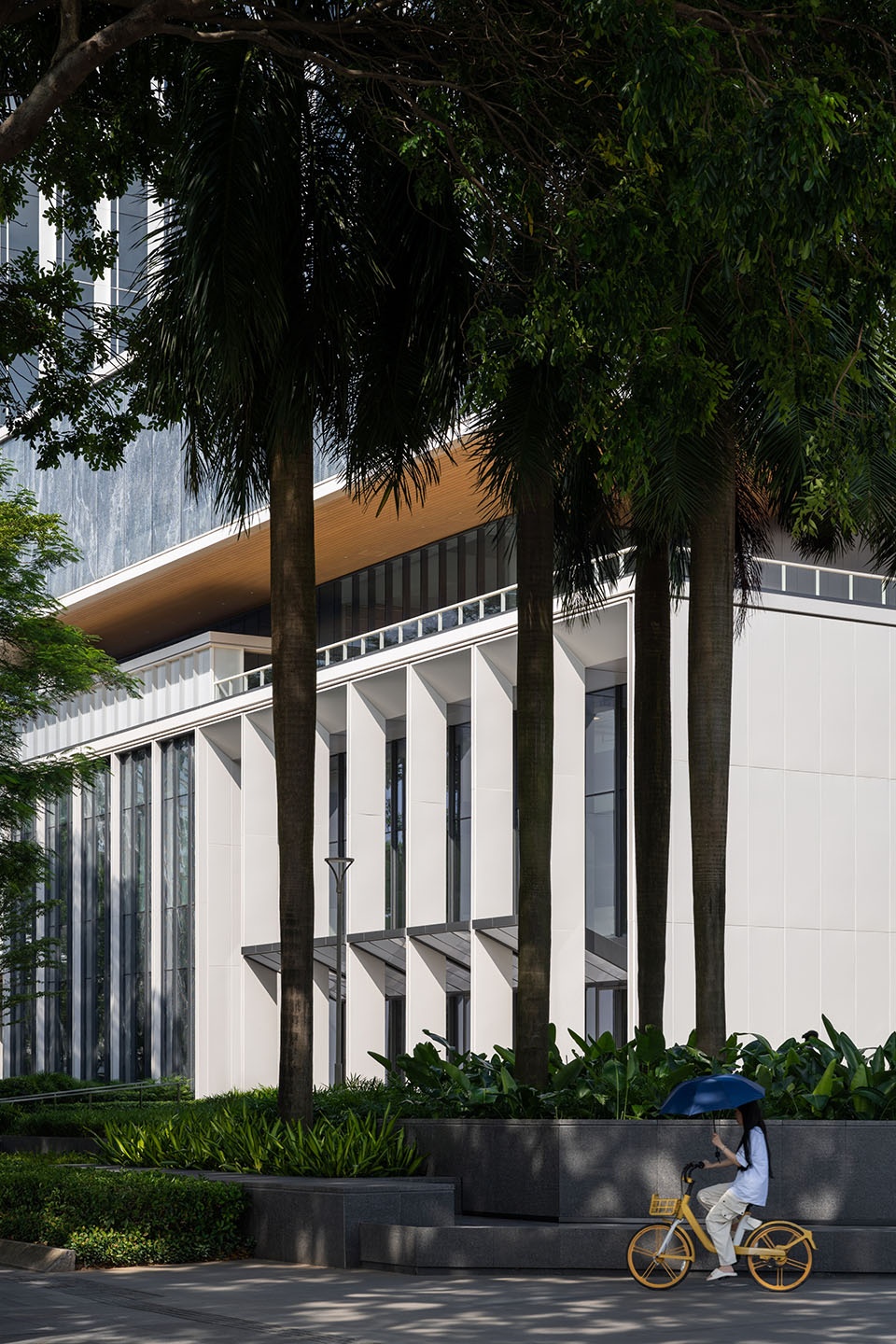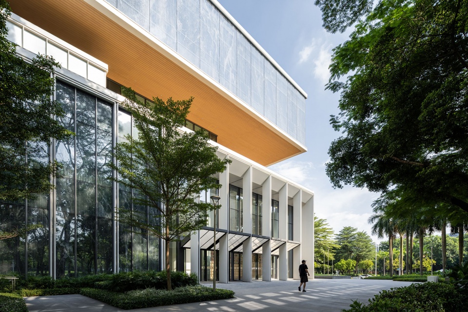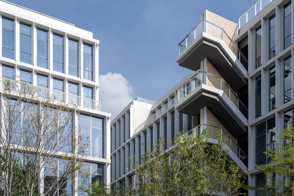整体建筑有大量自然光通过竖向天井与透明的流线空间深入室内,营造出明亮、健康、宜人的工作环境。白色铝制立面与细长竖向遮阳肋片共同过滤阳光,确保用户在亚热带气候下使用的舒适性。这些建筑共同展示了深思熟虑的建筑设计如何在回应业主诉求的同时,创造出灵活、高效、以人为本的新一代办公场所。