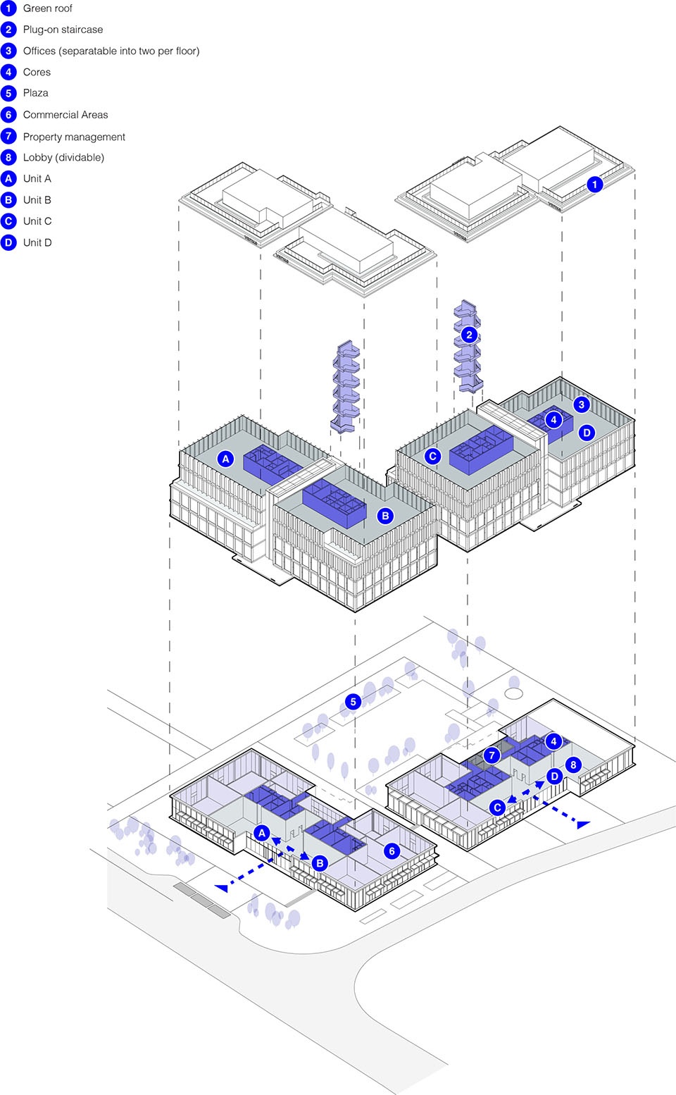 ▼办公及零售大楼轴测图,Retail axonometric