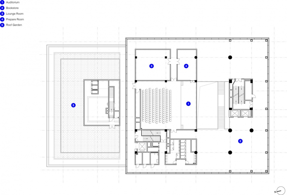 建筑立面进一步将多样性统一整合:竖向框架、富有层次的横向楼板以及半透明玻璃相互呼应,在开放性与私密性中达到平衡。通透的首层邀请公众进入,中间的建筑体量被磨砂玻璃包裹,承载社区空间;而顶部的体量以丝网印刷玻璃为主,内部为剧院与公共大堂。露台与天花处的温润木质饰面为建筑增添了温度。