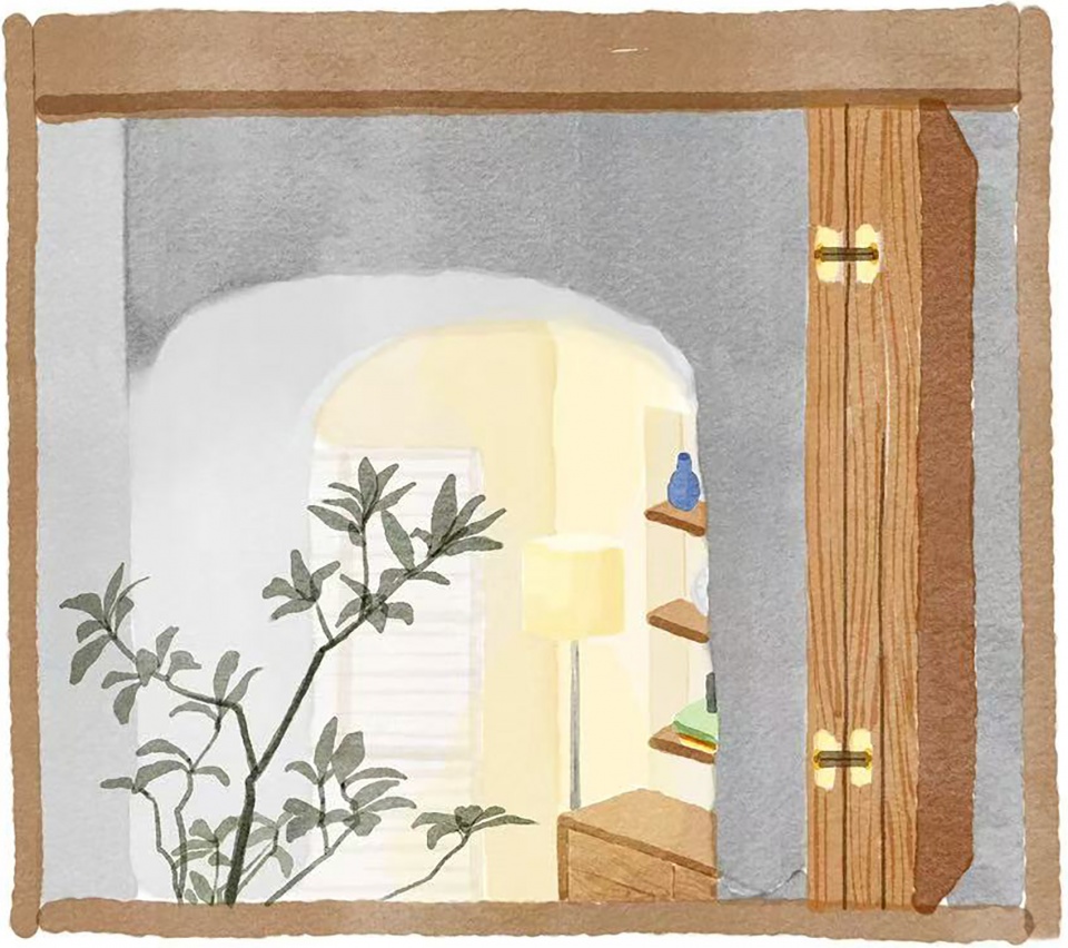 ▼盒子窗,从儿童房看小走廊拱门,