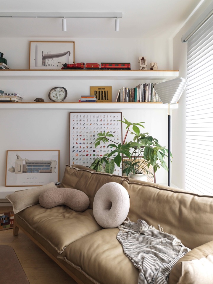 6米长的小走廊,给房间中的通行带来了颇多乐趣,这是之前无论如何也想不到的。多亏物业,逼我把方案改成更好的样子。女主人房现在从四周墙体中剥离出来,不仅成了一个真正的“茧”,也方便使用者从各个方向去感受它的圆润与温柔。明暗交替的行走体验,成了乏味日常的有益调剂。因为这条“房子里的小巷”,生活多了点小小风景。