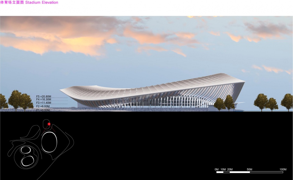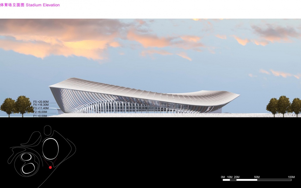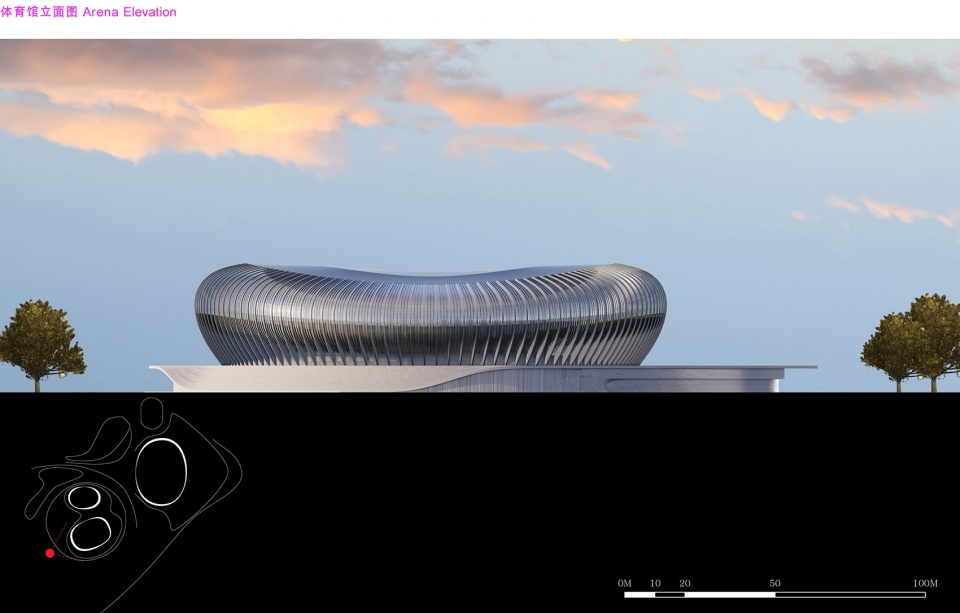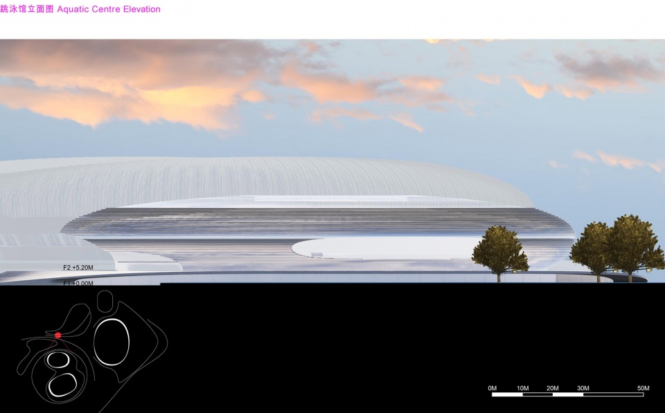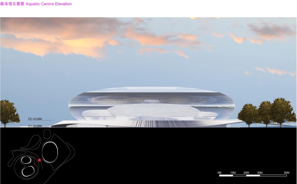 ▼跳泳馆立面概览,elevation of Aquatic Centre