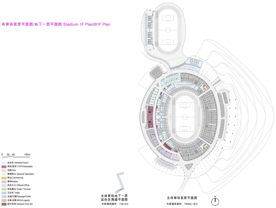 ▼体育场首层 / 地下一层平面图,Stadium 1F Plan / B1F Plan