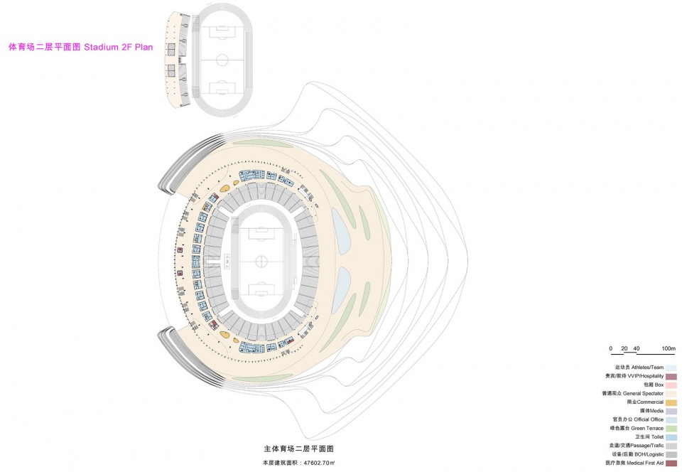 ▼体育场二层平面图,Stadium 2F Plan