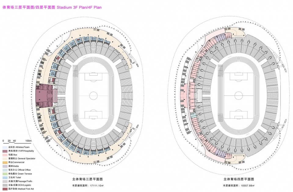 ▼体育场三层 / 四层平面图,Stadium 3F Plan / 4F Plan
