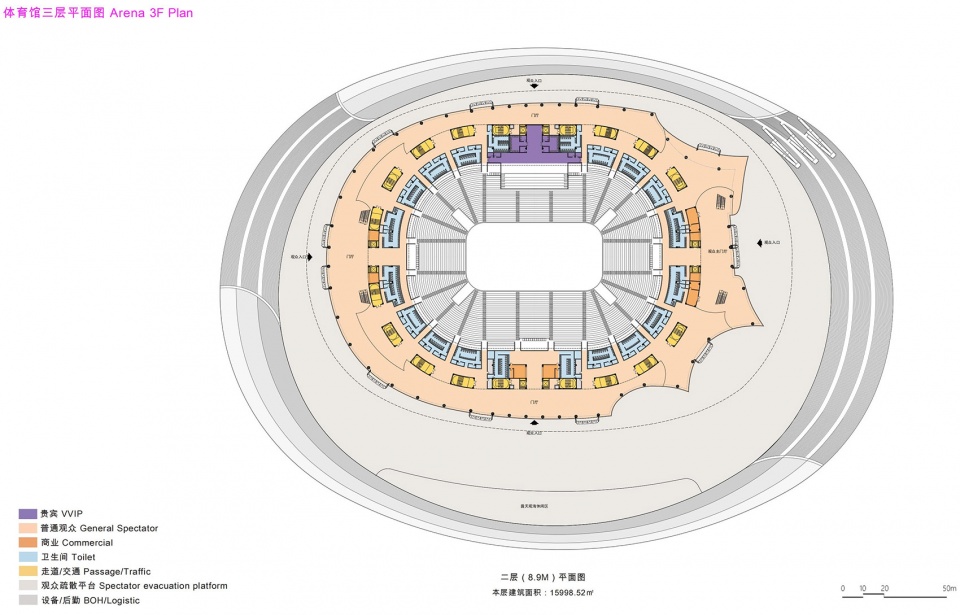 ▼体育馆三层平面图,Arena 3F Plan