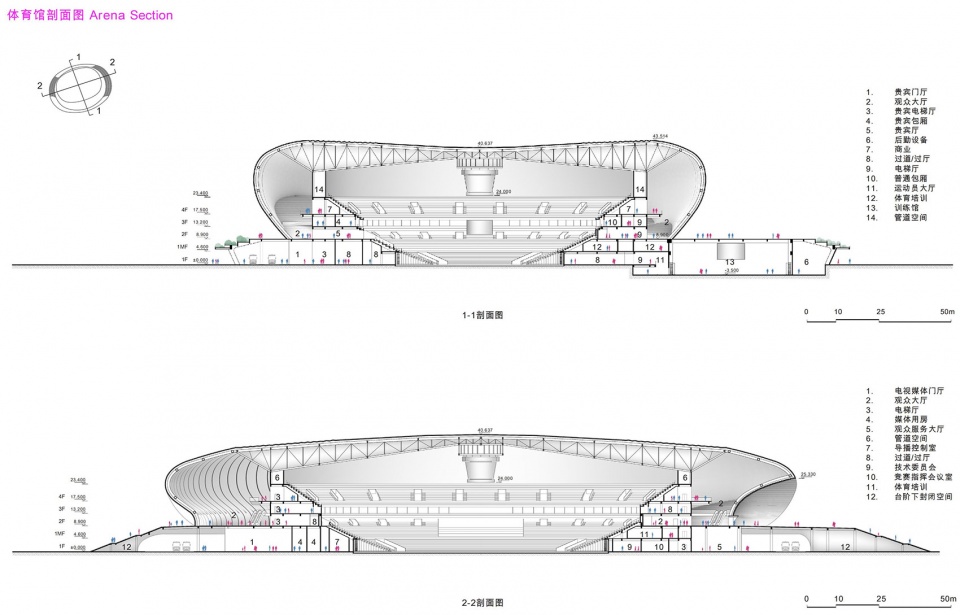 ▼体育馆剖面图,Arena section
