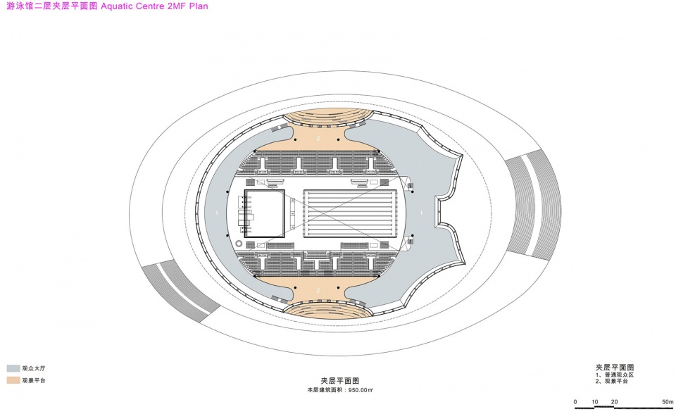 ▼跳泳馆二层夹层平面图,Aquatic Centre 2MF Plan
