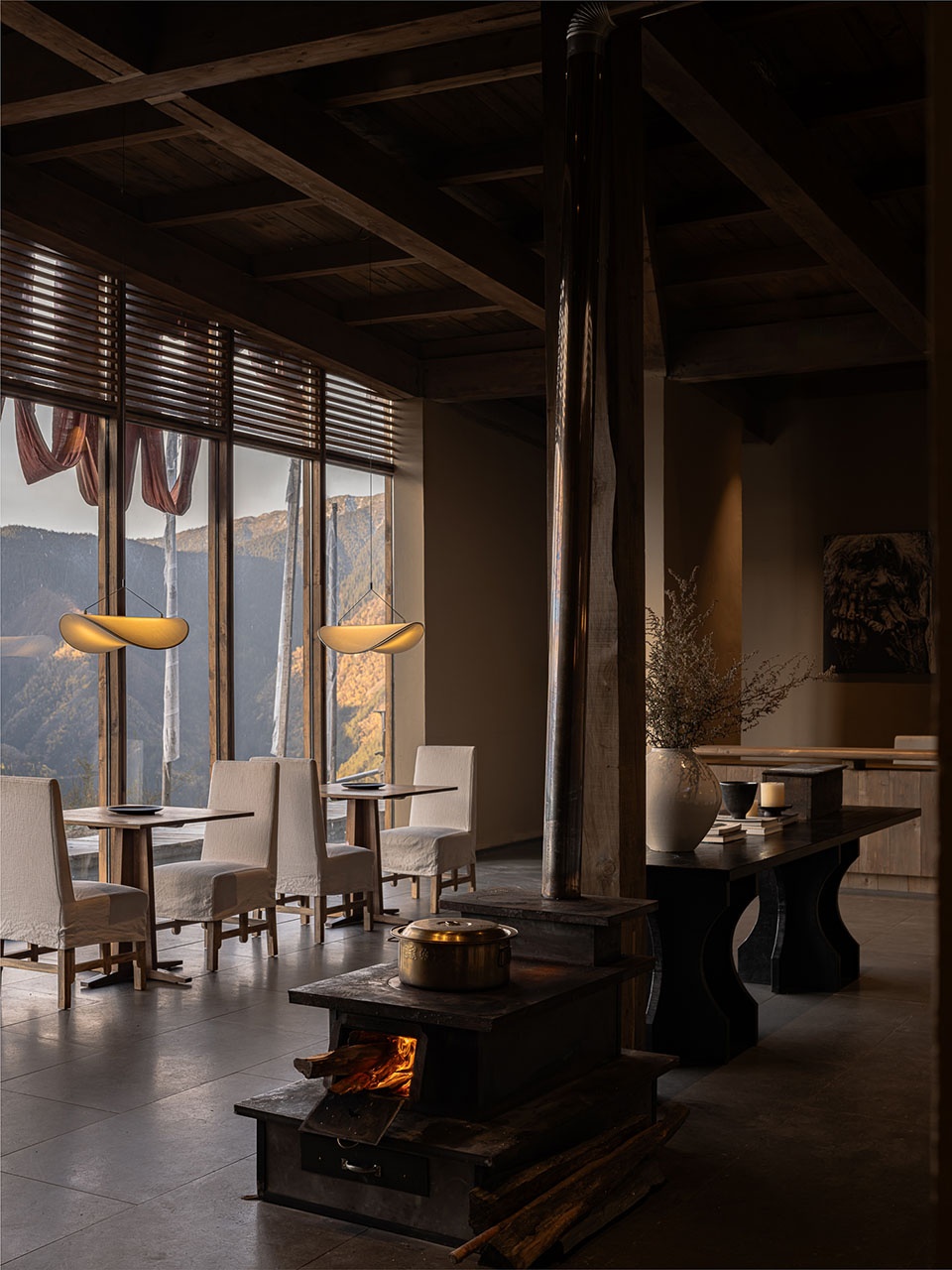 Within each suite, we have incorporated a separate living area that serves as a crucial transitional space. This is not merely a functional zone, but a psychological “sanctuary” and “threshold.” Its stable, enveloping, and comforting qualities provide guests with a profound sense of security and privacy, allowing them to settle both body and mind before fully immersing themselves in the vastness of nature.