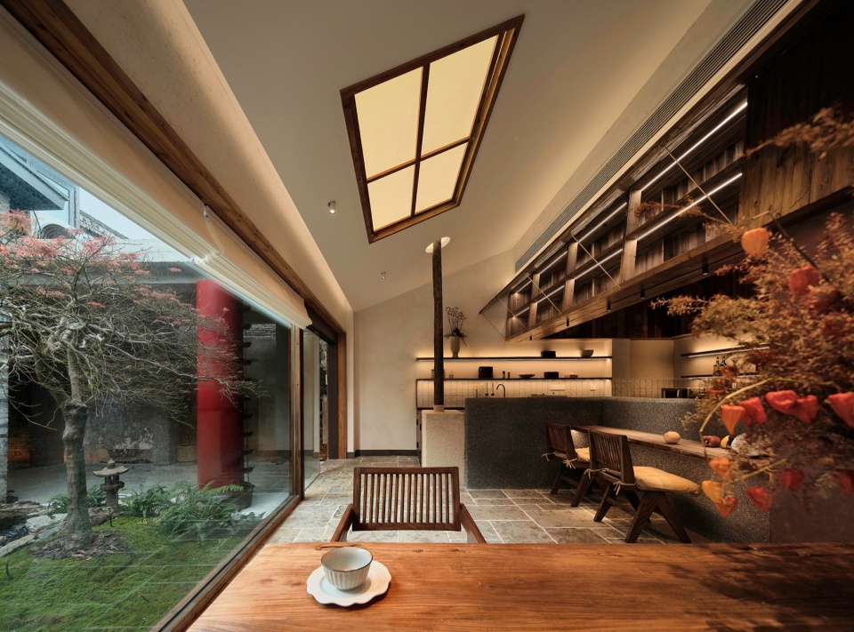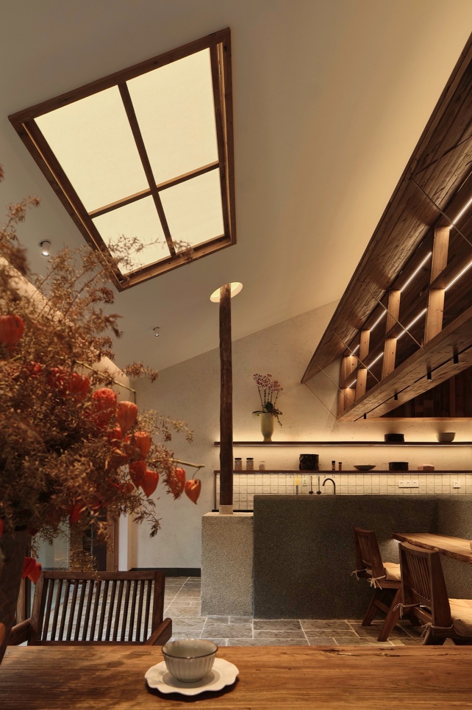 A Dialogue between Preservation and Reconstruction Two separate buildings are connected through an enclosed renovation. The original roof is retained, the walls are demolished and modified, and the space is rebuilt with stones. This not only preserves the essence of time but also endows the space with new vitality.