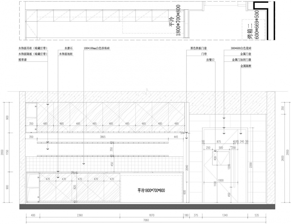 后场是烘焙与裱花的专注天地, 我们沿用建筑的斜顶结构,模拟自然天窗,引入光线,照亮水洗石台面与竹编飞檐。