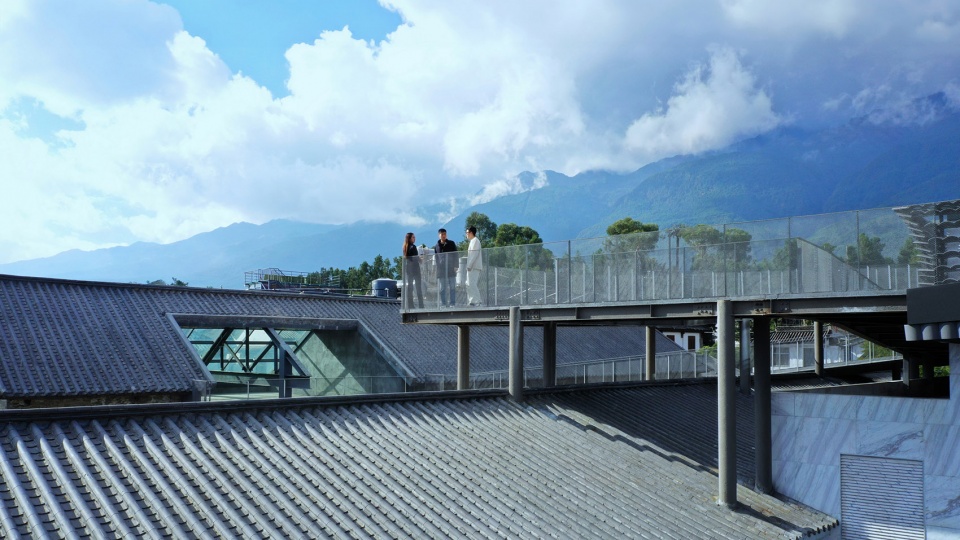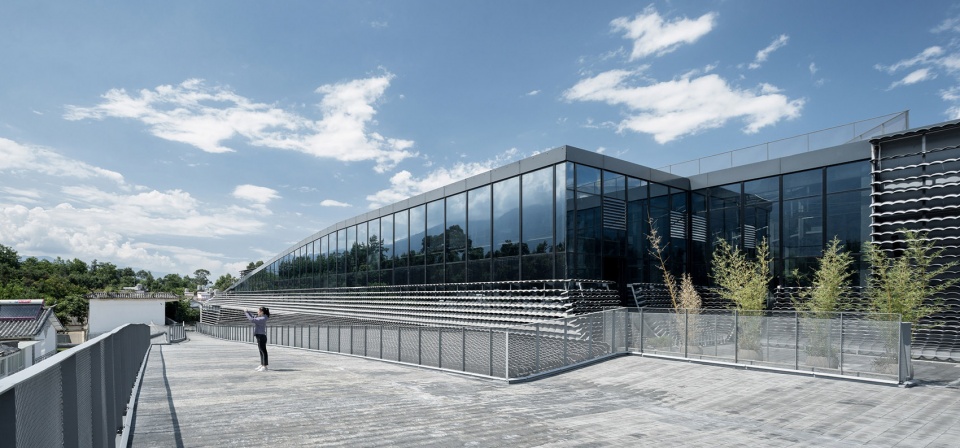 The main workshop of the factory is the tallest building within the ancient city of Dali. While the west side of the roof terrace overlooking Cangshan Mountain, the east has a view over Erhai Lake. The high and low roofs of the factory are connected via pathways and platforms. An undulating industrial roofscape is formed that creates a dialogue with the distant landscape of Cangshan and Erhai. As the Athens plateau gave birth to the Acropolis and the Western culture, the transformer park aims to create an undulating urban plateau that brings Dali and Eastern culture back to live.