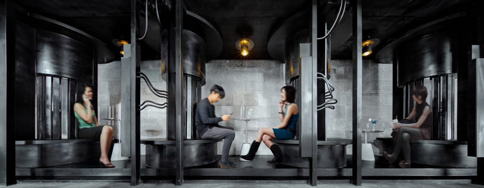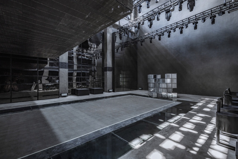 室内空间:变压剧场的室内空间有四大秀场组成。这四个既是不同的消费空间也是不同的戏剧空间。四个空间可分可合,中间有一组悬置的空间穿越这四个剧场,为观众提供俯瞰的第二视角观看演出。