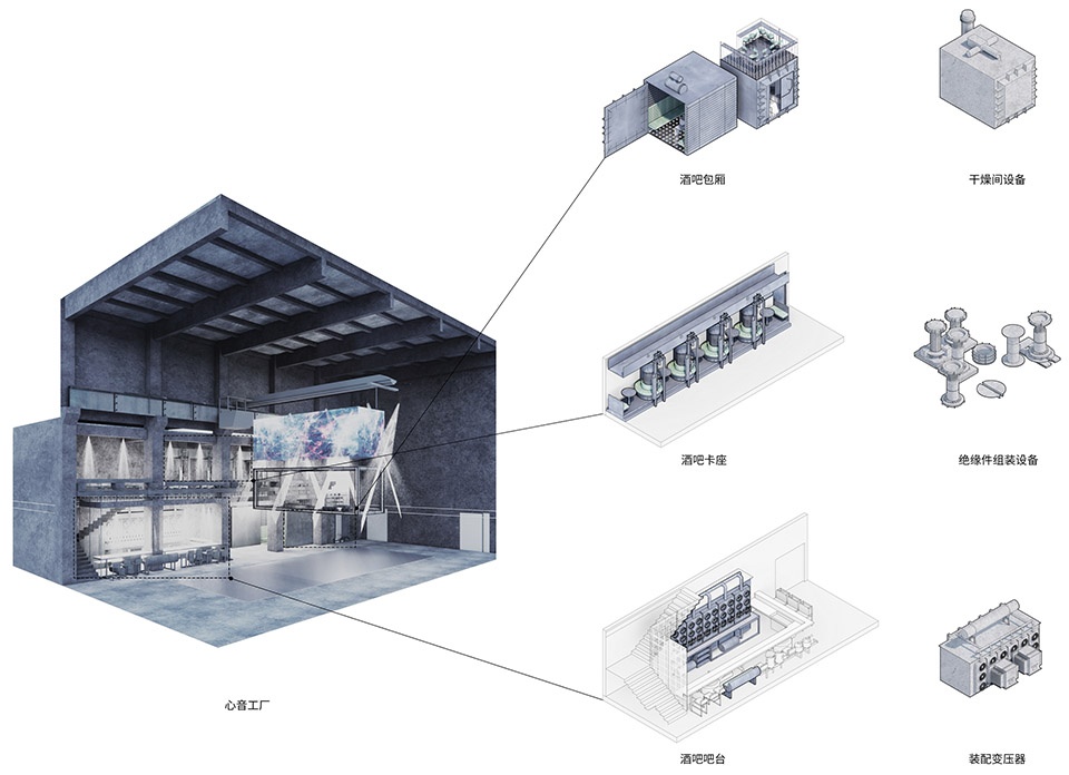 ▼心音工厂舞美分析图,axonometric