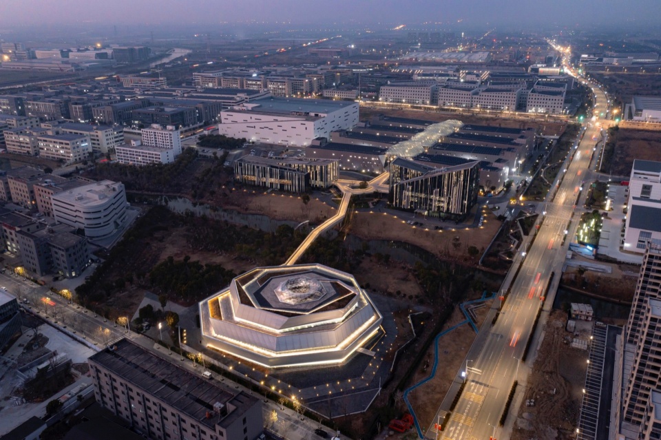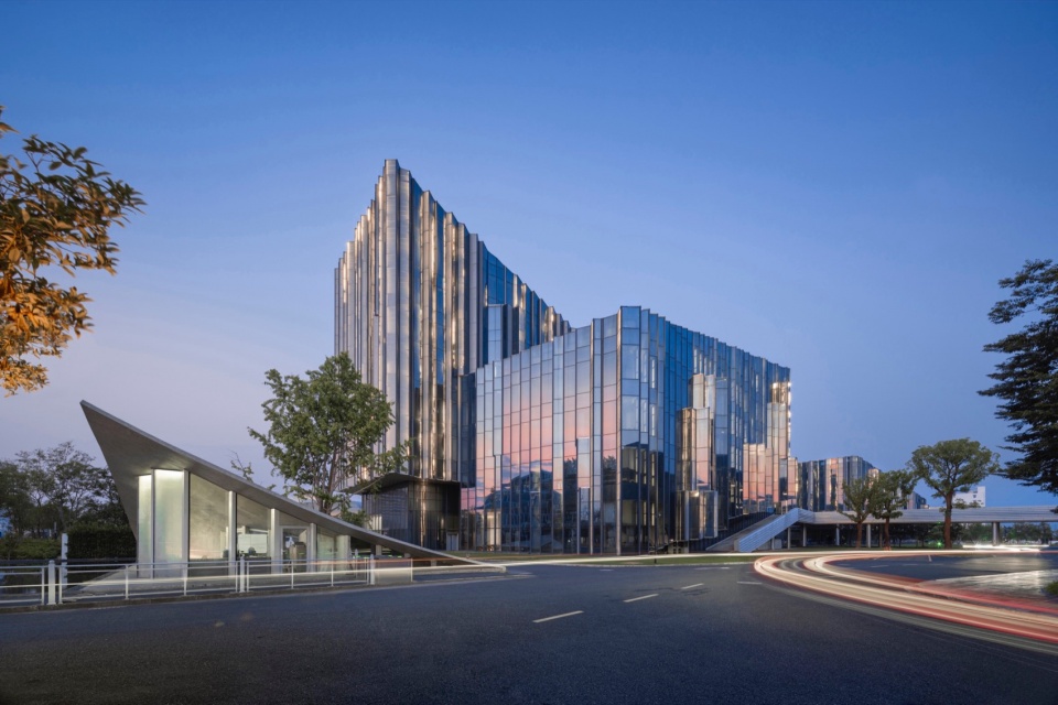 项目由阔合CROX林琮然担任总建筑师,以九年时间完成从景观到建筑的一体化塑造,使园区成为一座“生长的有机体”。不同于传统“设计后置” 模式,林琮然以环境共生为核心,推动地方文化现代转译:彻底摒弃工业园 “生产至上” 逻辑,将江南水渠地景转化为串联办公、生产、展示的生态脉络,重构了 “步移景异” 叙事;以蔓延生長的建筑体量,呼应江南聚落 “自然” 的原生尺度, “分享设计” 通过开放南面的设计权,邀请了七家国际事务所共同打造,让设计力量关怀重新回到工业土地上,重现生产的聚落本应有的自由思想。