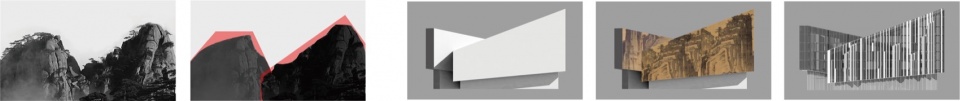 立面设计提取国画“斧劈皴” 灵感,结合南面临水特质传递东方山水意境。为兼顾意趣与实用,选用折叠式百叶幕墙:其折叠肌理呼应抽象山水,幕墙虚实关系形成动态模糊感,呈现通透且不定的整体形象;功能上,凹凸建筑表面可高效绝缘隔热、阻挡光污染,同时保障任意角度观景视野,室内则借面板间光线反射形成散射光,维持明朗通透。