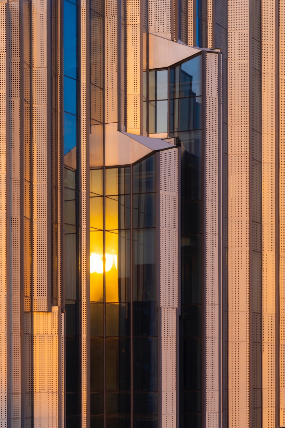 ▼总部立面铝板冲孔自然排列,The perforated aluminum panels on the headquarters facade are arranged naturally