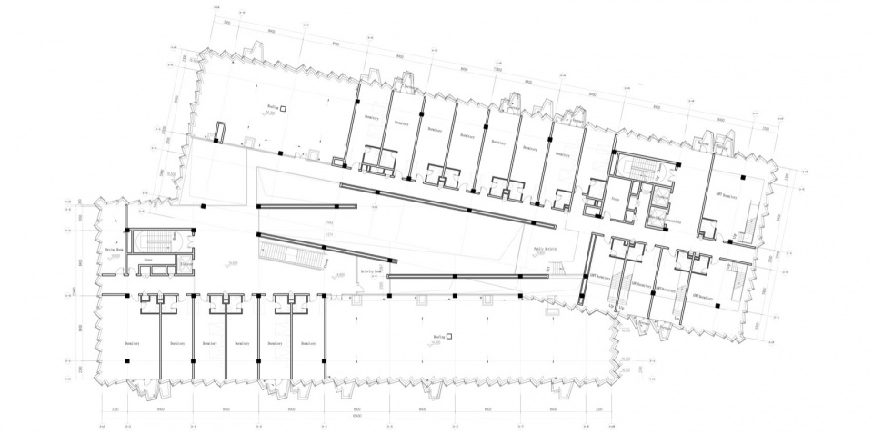 ▼员工宿舍楼五层平面图,Life Support Building 5th Floor Plan