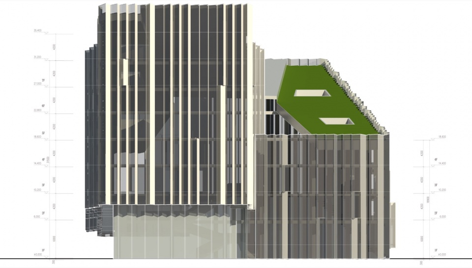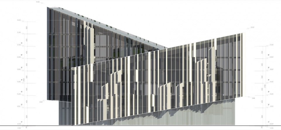 ▼总部办公楼东立面图,Headquater East Elevation