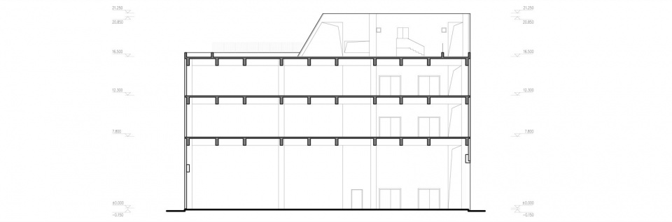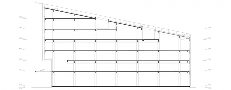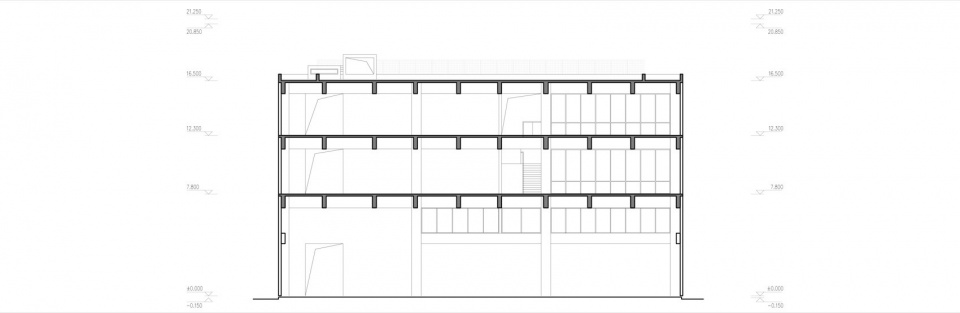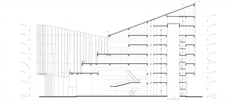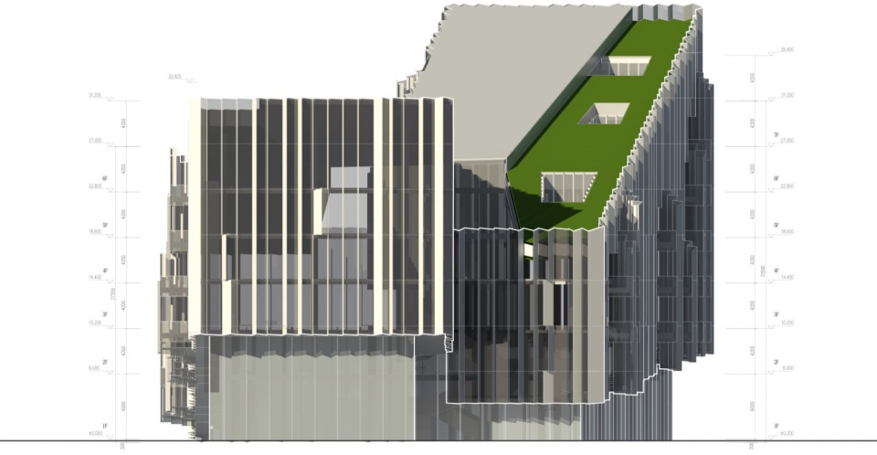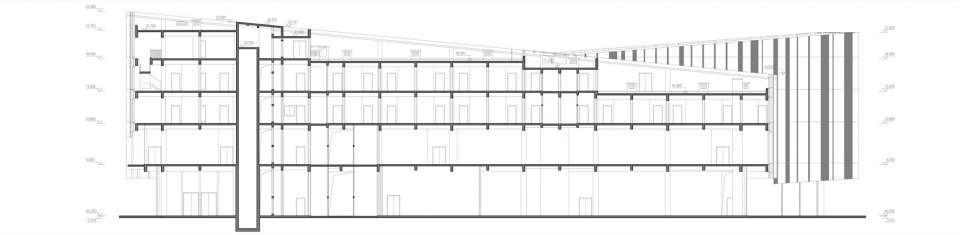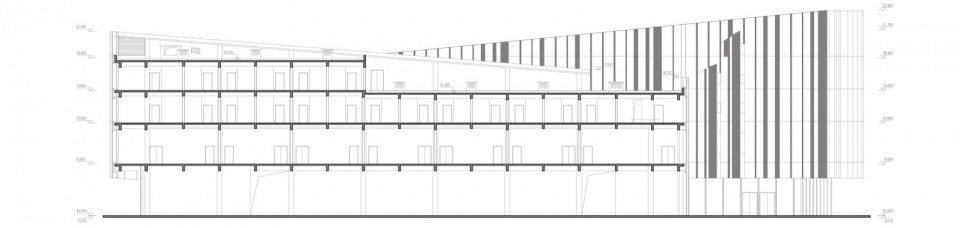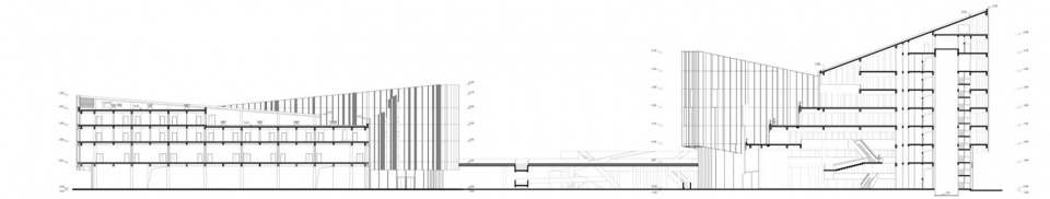 ▼园区总部办公楼员工宿舍剖面图,Campus Headquater-Life Support Building Section