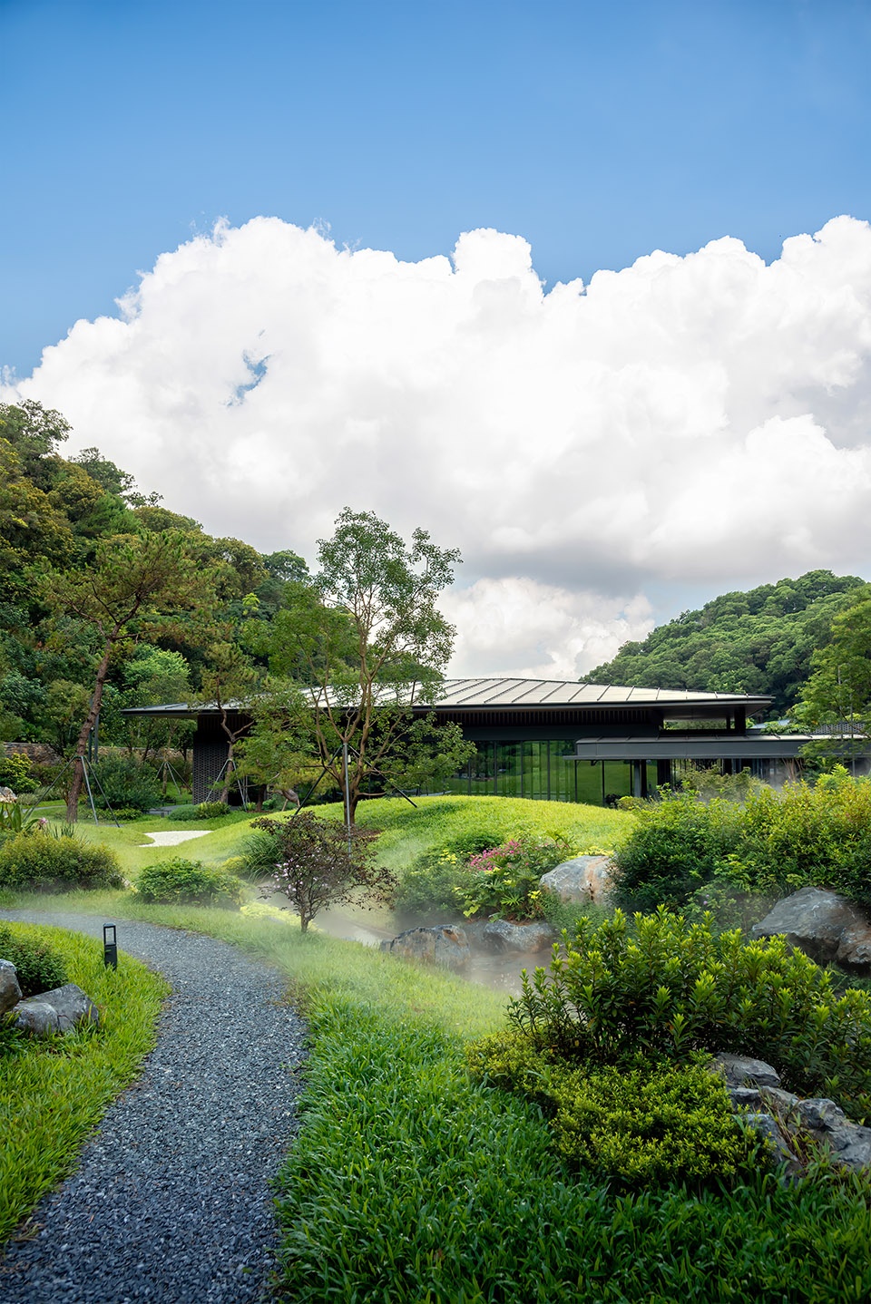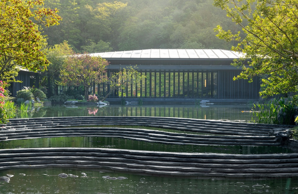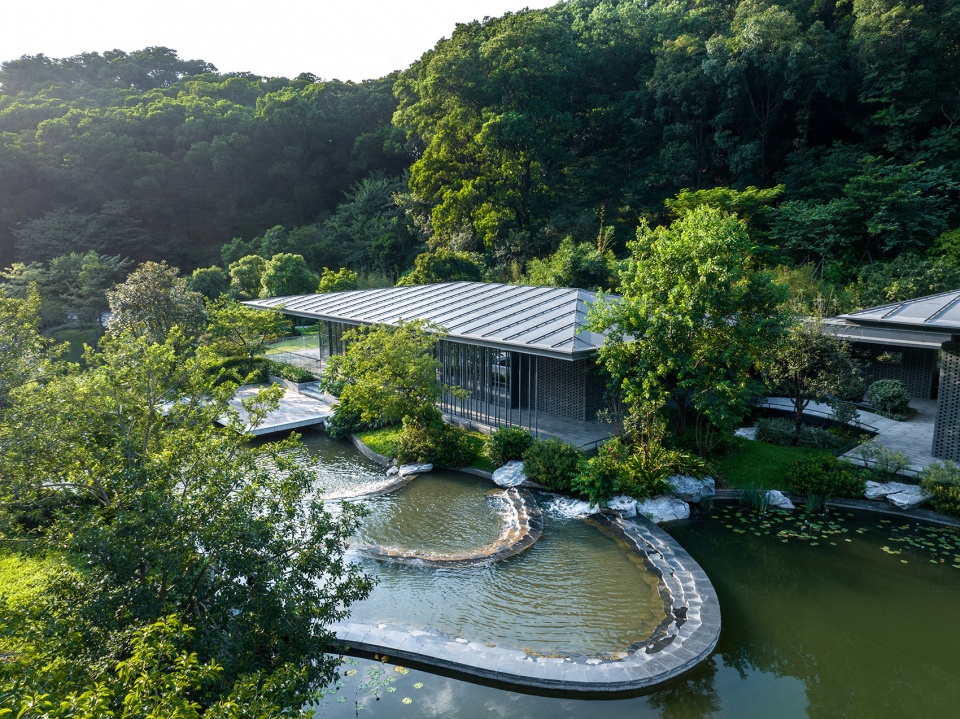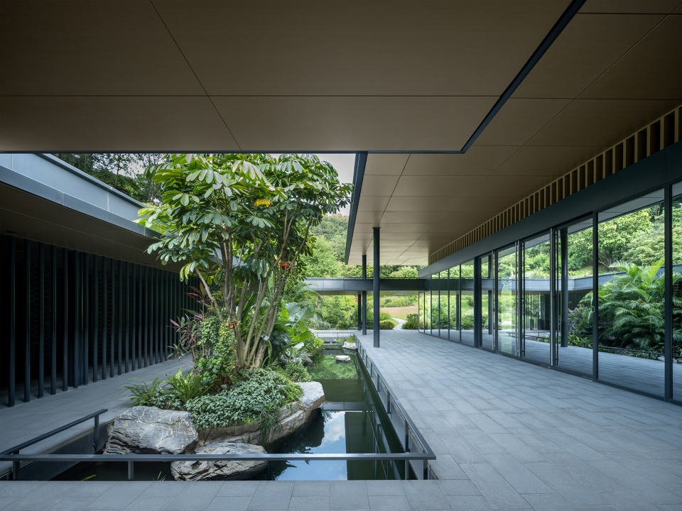 The Nature Education Center is backed by the lush and deep canyon of Baiyun Mountain. The center of the site is the water surface formed by the convergence of mountain streams. The building volume is divided into pieces, adopting a light and low posture, and unfolds gently around the water surface. The main buildings are connected by corridors, combined with open spaces such as open corridors, courtyards, and platforms. The overall layout is natural and smooth, creating a modern Lingnan garden architectural concept of “integration into mountains and rivers, internal and external penetration, different views with every step, pavilions, terraces, and bridges”.
