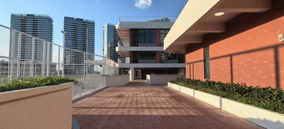 The large curved shape of the teaching building stems from the design concept of guiding the building’s form toward Banmei Folk Culture Park after entering the school gate. The stepped terraces, which recede inward level by level, open westward, allowing the sunset scenery to be fully enjoyed at every moment throughout the four seasons. These terrace spaces ultimately create a high-quality, free activity area for teachers and students.