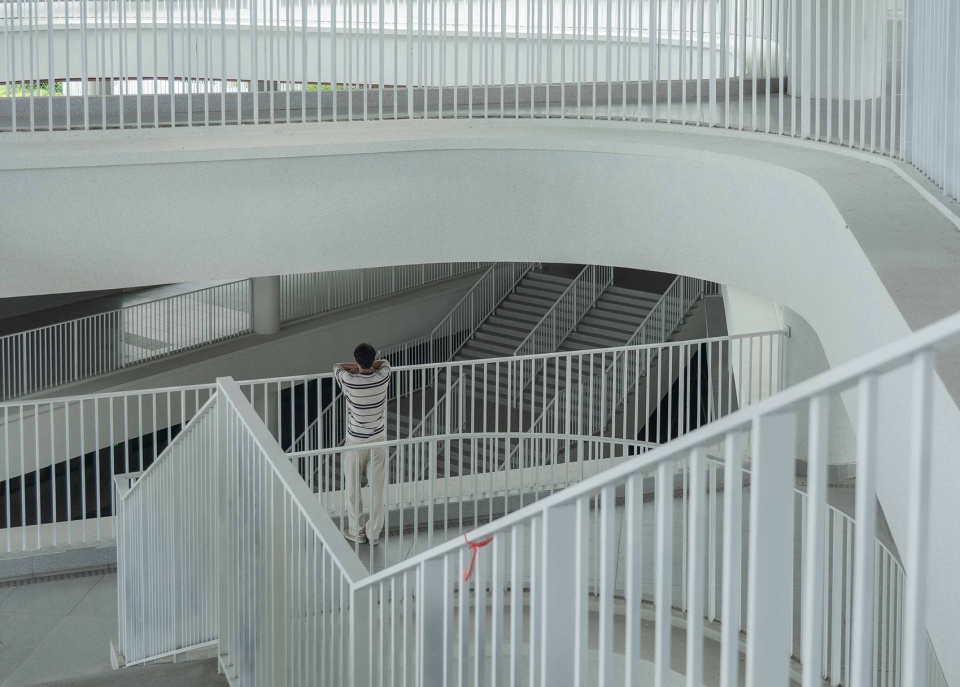 More notably, the teaching building, Art Building, dormitories, auditorium, and sports field are connected by a series of circular traffic routes. Terraces of various sizes are also integrated into the traffic layout, ultimately weaving teaching, art, and living spaces into a tightly linked transportation network.