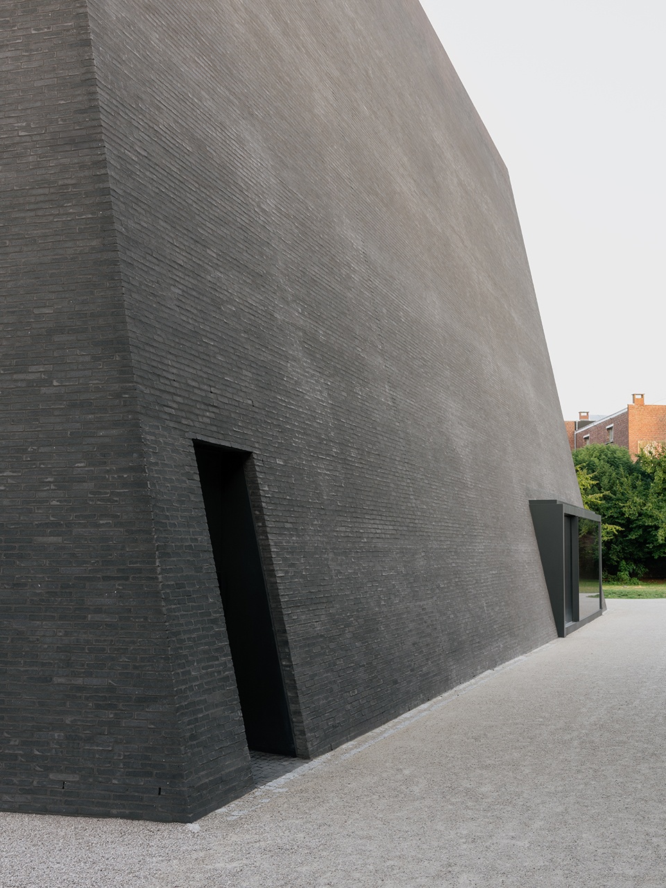 地下展区位于整体建筑之下,而新建的公园展馆以其鲜明的存在感与历史建筑展开对话,无论是在形态上呼应其坡屋顶的垂直感,还是在正交的布局逻辑上。新建筑以可辨识的姿态融入现有建筑语境,成为延续城市构成历史的又一座展馆。其立面覆以深色砖材,使其作为历史建筑群中独立要素的特质更加突出。