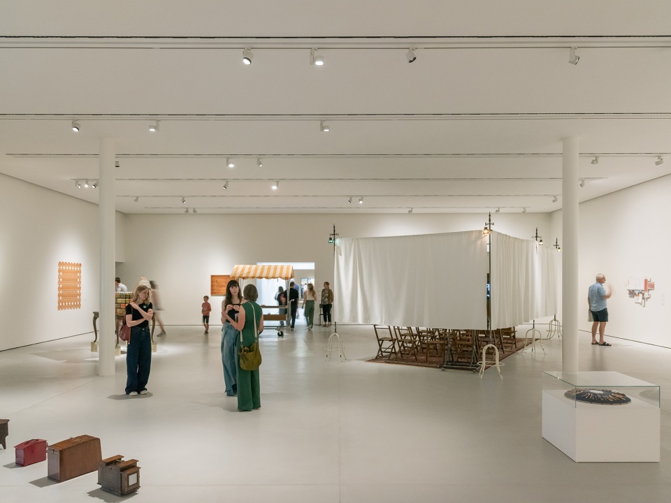 对原宿舍建筑的介入极为克制,原有的窗户、天花板与红陶地面得到了修复。同时新增了一整面长展柜,用以展示科特赖克市的馆藏作品,也邀请艺术家与该收藏展开创作互动。
