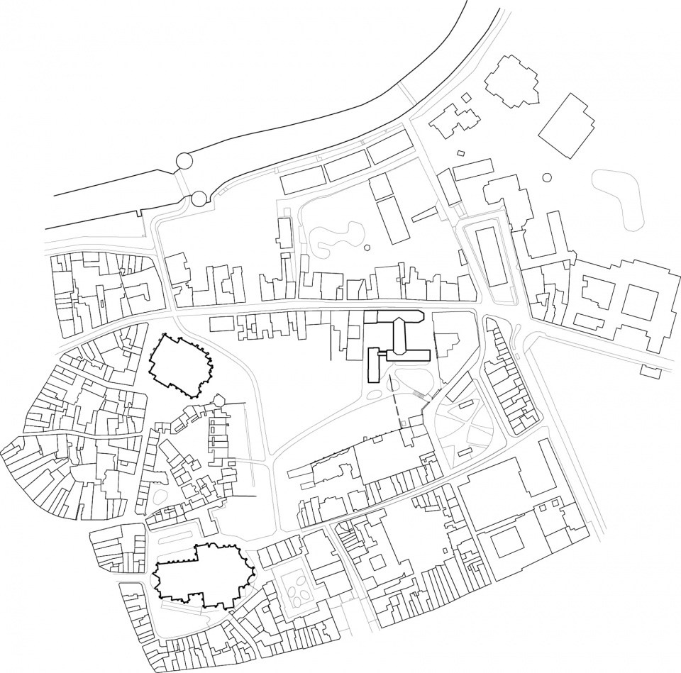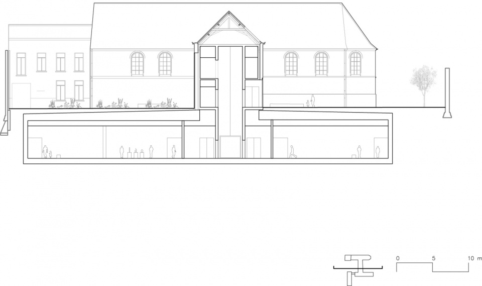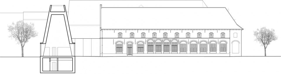 从城市设计角度来看,项目移除了并非源自修道院原始布局的部分构筑物,并新增一座展馆,其正交布置于现有体系之上,并朝向Begijnhof公园探出。此举重新界定了原有回廊,并创建了从Groeningestraat通向公共花园的路径。